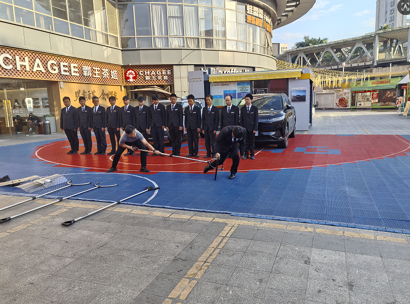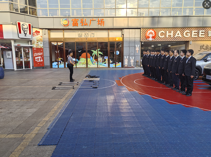 商场营业前的守护:广东华创清晨防暴演练