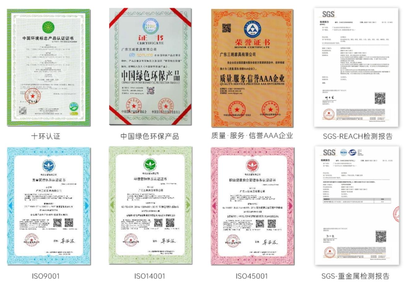 同时三朗家具在产品设计中也注重环保,产品获得了十环认证、中国绿色环保产品、质量·服务·信誉AAA企业等多项国内外环保认证。