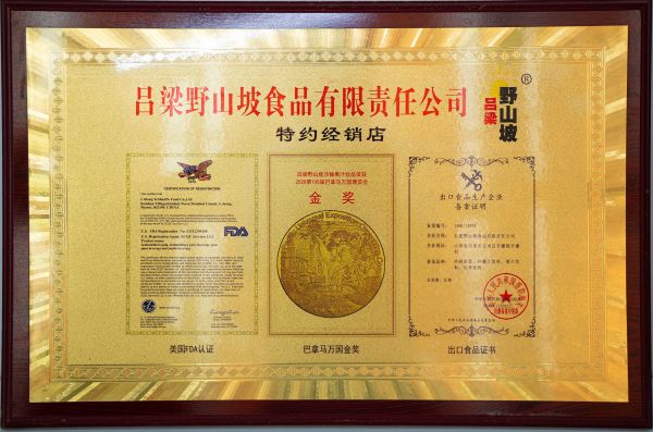 野山坡拥有美国FDA证书HACCP管理体系认证(证书编号001HACCP1600559)、中华人民共和国出口食品生产企业备案(编号1400/11024),以及105届万国(国际)博览会金奖。这些国际认证不只是市场准入凭证,更是产品品质的第三方验证。